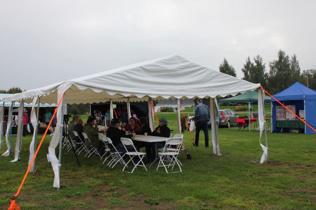 Oli kutkuttavaa nähdä myyjien saapuvan paikalle ja alkavan määrätietoisesti nostamaan ylös myyntikatoksiaan. Pudasjärven Kehityksen tiimin Jukka ja Auvo auttoivat missä vain apua tarvittiin.